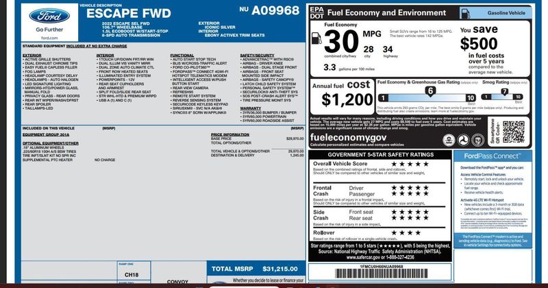 ENGINE: 1.5L ECOBOOST, EQUIPMENT GROUP 301A, EBONY, FRONT WHEEL DRIVE, HEATED ACTIVEX TRIMMED FRONT SPORT CONTOUR BUCKET SEATS, TECHNOLOGY PACKAGE