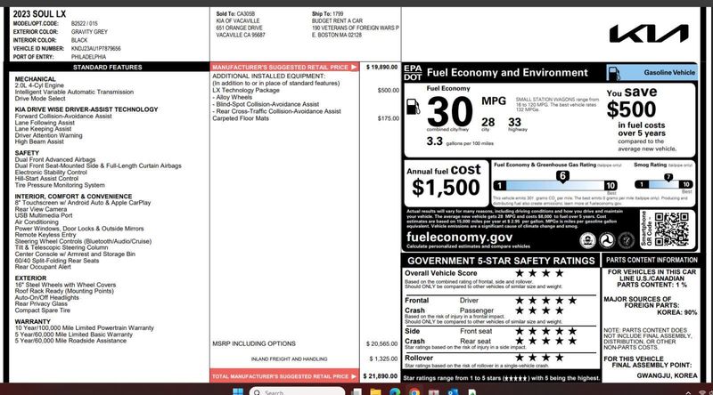 When you choose this Gravity Gray 2023 Kia Soul LX with 55,347 miles, you are not just buying a used vehicle - you are investing in quality, reliability and peace of mind. Our clientele depend on us for Transparent Pricing, Convenience and, most importantly, Customer FIRST Service!\r