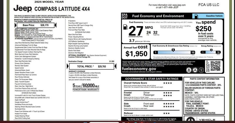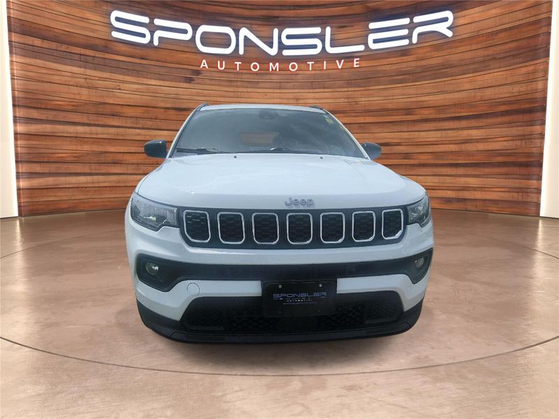 This 2025 Jeep Compass Latitude, has a Bright White Clearcoat exterior and an Black interior color. 16,847 miles. Stock Number CBP066.